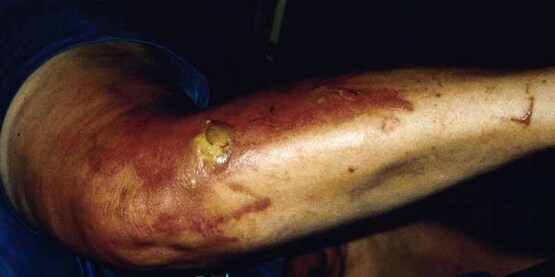 Unlike many invasive species, Giant hogweed is a problem primarily because of the threat it poses to human health. While simply brushing against the plant is not harmful, when moist skin comes into contact with sap from crushed leaves, stems, roots, flowers, or seeds, and then is exposed to sunlight, severe irritation can occur over the course of several days. Skin becomes red and itchy, and burn-like lesions and large blisters form. These fade within days, but the area may remain sensitive to sunlight for years, and lesions and blisters may return, and scars or spots from hyper-pigmentation may last for years. Sap coming into contact with eyes can result in temporary or permanent blindness.